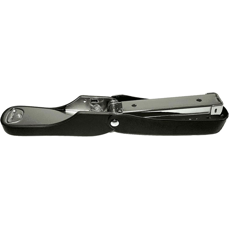 Verfügt über einen integrierten Heftklammerentferner und lässt sich zum Heften flach öffnen; Das Heftklammer-Aufbewahrungsfach bietet Platz für 210 zusätzliche Heftklammern, sodass Sie immer vorbereitet sind